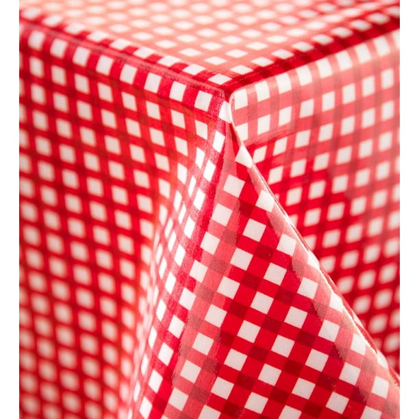 Walmart round vinyl burgundy tablecloth.